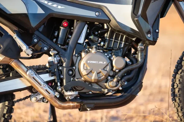 Now, let’s talk specs (and maybe a bit of tech magic). With a zippy 293cc engine paired with a six-speed, slipper-clutched gearbox, the Aventura Rally packs a punch with a competitive 33bhp. What’s more, Rieju sprinkled some of that Mediterranean fairy dust on this model to add an extra five horses and more torque than you can shake a stick at. And don’t even get me started on the suspension—both front and rear boast an impressive 235mm travel, making it more adjustable than your Instagram feed!